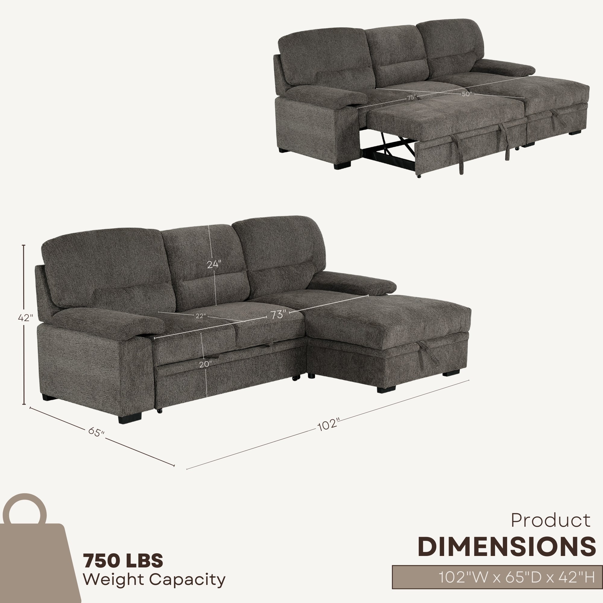 Versatility meets comfort with the Danilo Sleeper Sectional. Perfect for sleepovers, movie nights, or hosting guests, the Danilo features an easy-to-access pull-out bed that ensures everyone sleeps comfortably. The spacious chaise includes built-in storage, ideal for tucking away blankets, pillows, or any essentials. Designed for relaxation, its spring-supported seating combined with soft fabric and plush foam cushions provide all the comfort you need. Supported by a sturdy solid wood and plywood frame, the Danilo promises lasting durability and strength, making it a stylish and functional centerpiece for your living space.