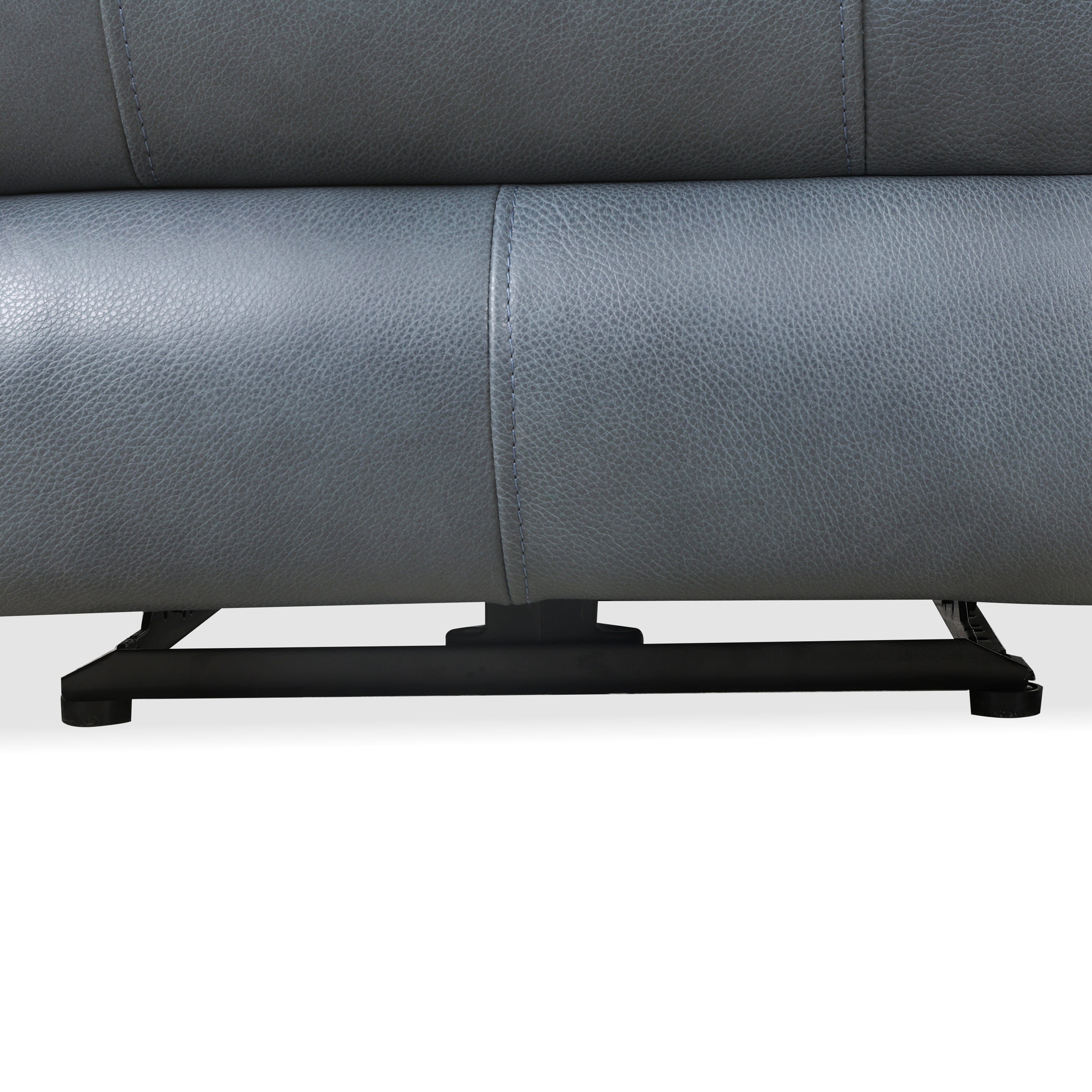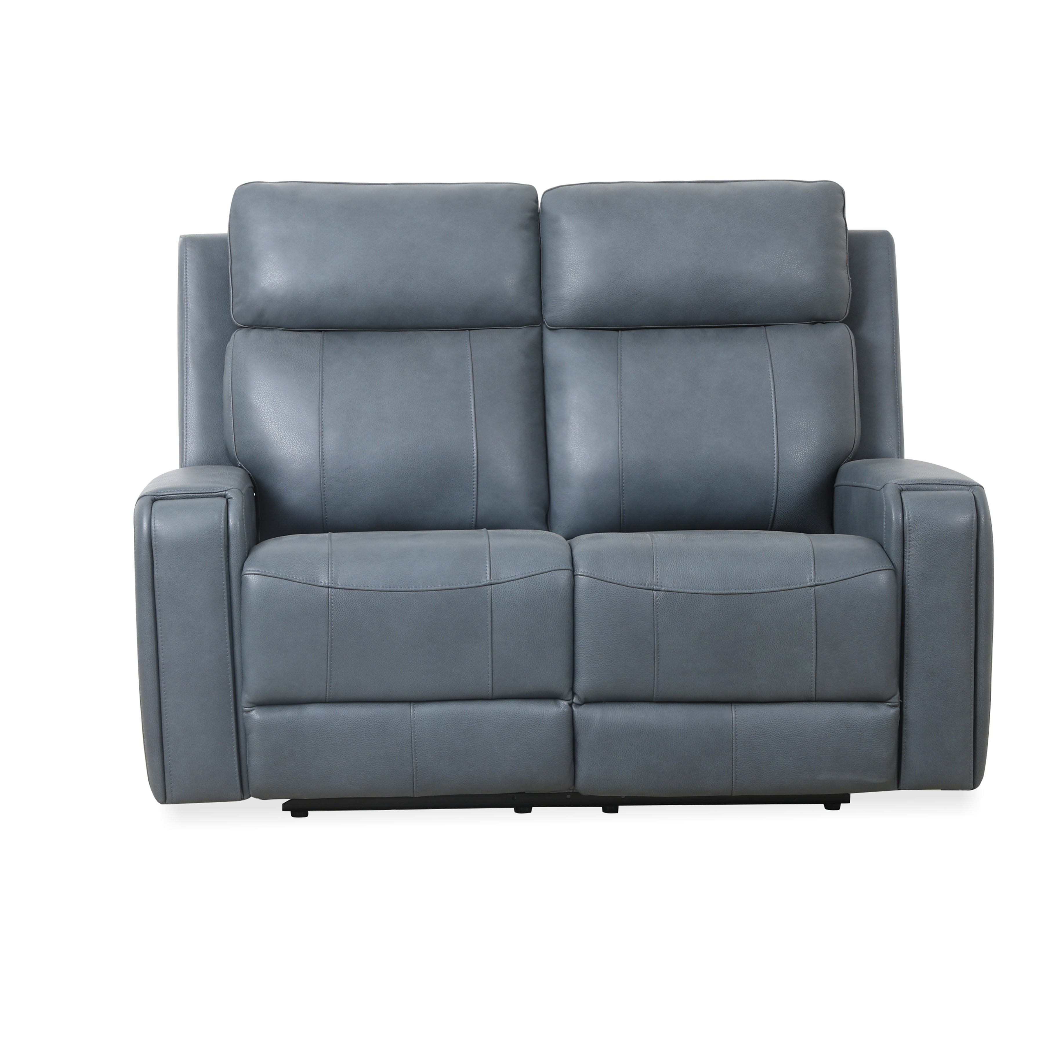 Designed for two, the Cavron Dual Power Reclining Loveseat blends sleek style with everyday comfort. Upholstered in smooth leather with PVC match, it features dual power motion so each seat adjusts the headrest and footrest independently. Padded cushions and an angled backrest deliver ergonomic support, while the wall-hugger design allows full recline with minimal clearance from the wall. Built-in USB charging ports in each control panel keep devices powered, and the durable frame of engineered wood and metal ensures lasting use.