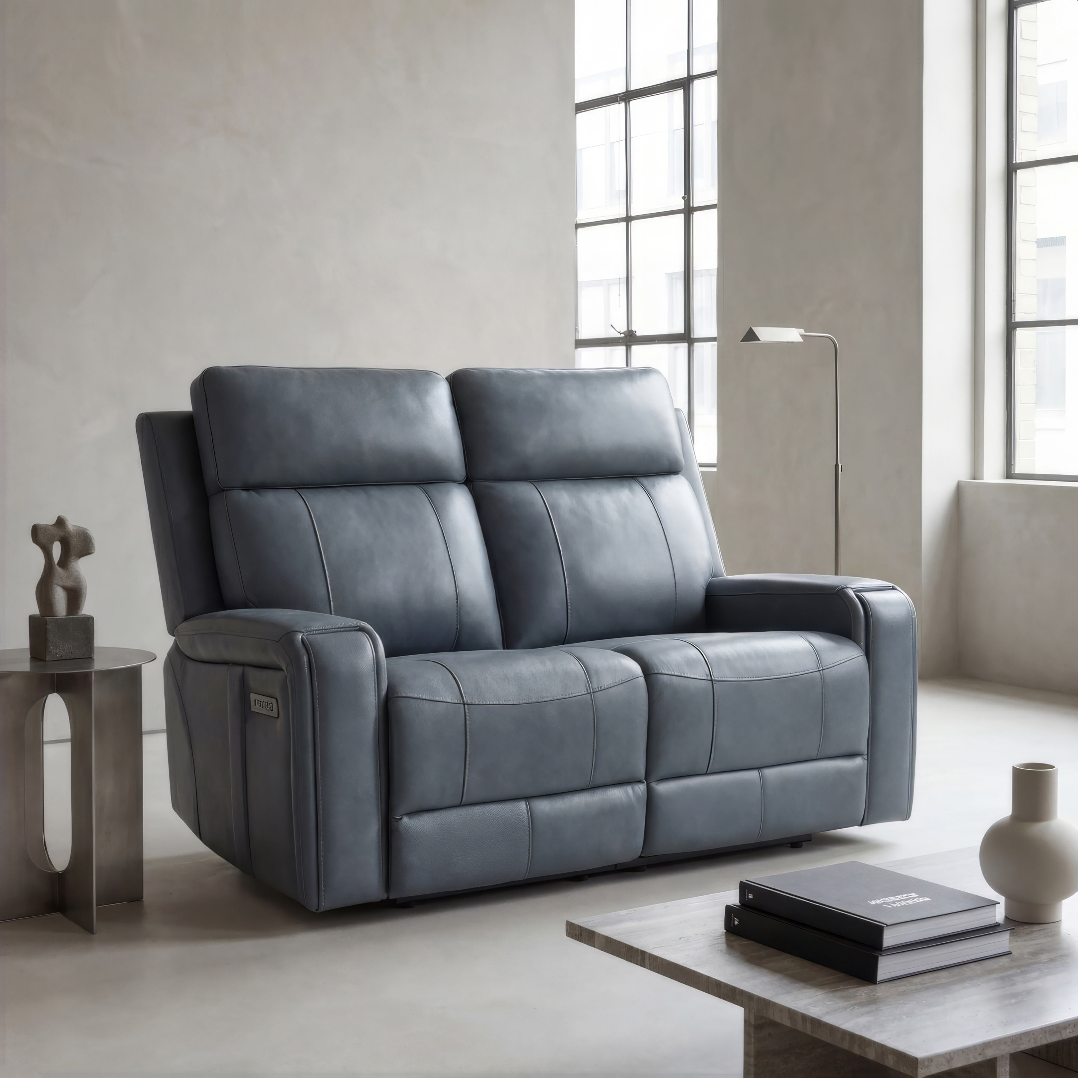 Designed for two, the Cavron Dual Power Reclining Loveseat blends sleek style with everyday comfort. Upholstered in smooth leather with PVC match, it features dual power motion so each seat adjusts the headrest and footrest independently. Padded cushions and an angled backrest deliver ergonomic support, while the wall-hugger design allows full recline with minimal clearance from the wall. Built-in USB charging ports in each control panel keep devices powered, and the durable frame of engineered wood and metal ensures lasting use.