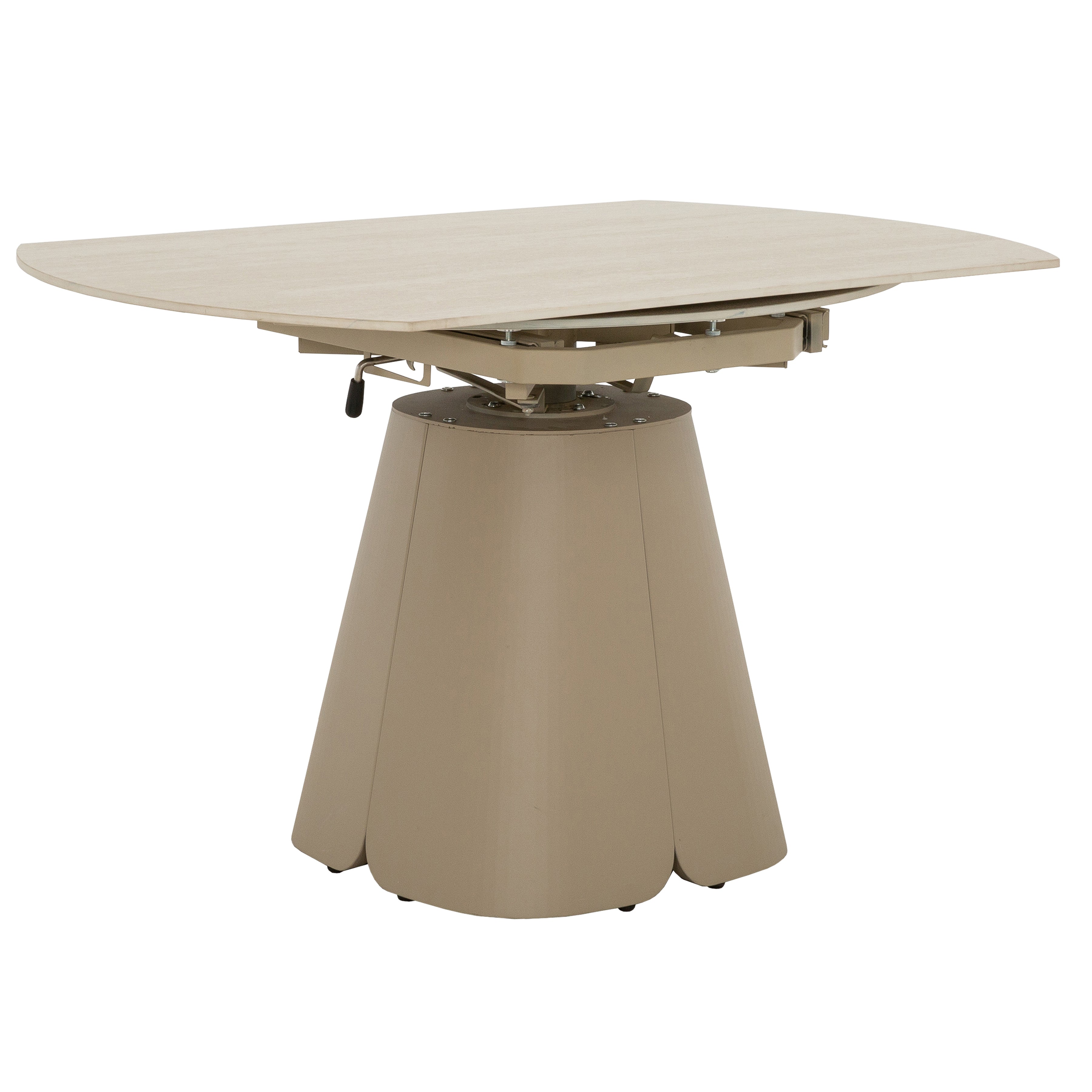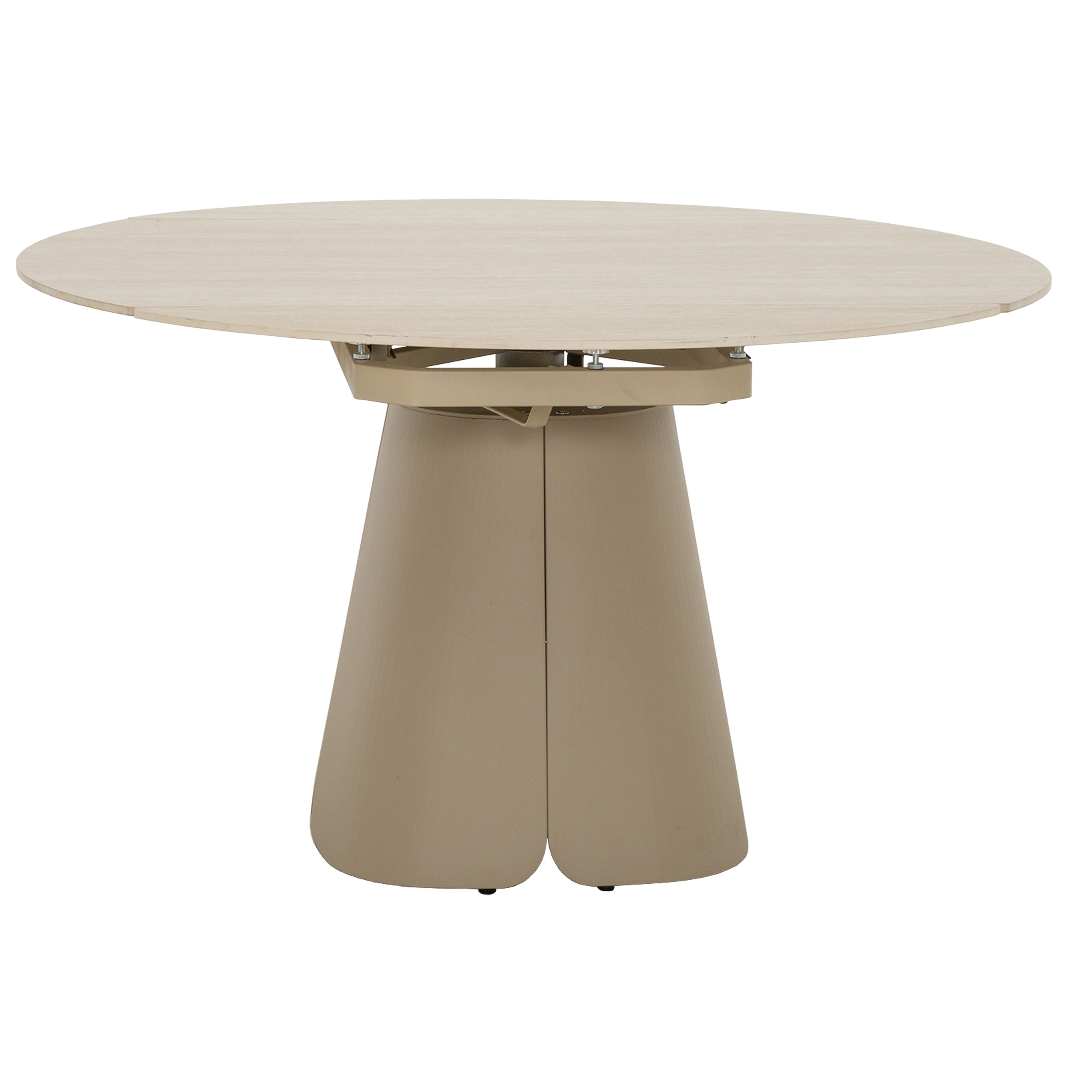 A smooth rotating extension system gives this marble-top dining table its effortless versatility. The round surface keeps conversation close, while the extendable design opens up space when guests arrive. Its marble-finish top adds a clean, elevated look that’s durable enough for everyday meals. A sculptural metal base, finished in soft powder coating, provides the stability customers want in a daily-use table. For homes that need flexible seating without sacrificing style, this design brings practical function and modern presence to any dining room.