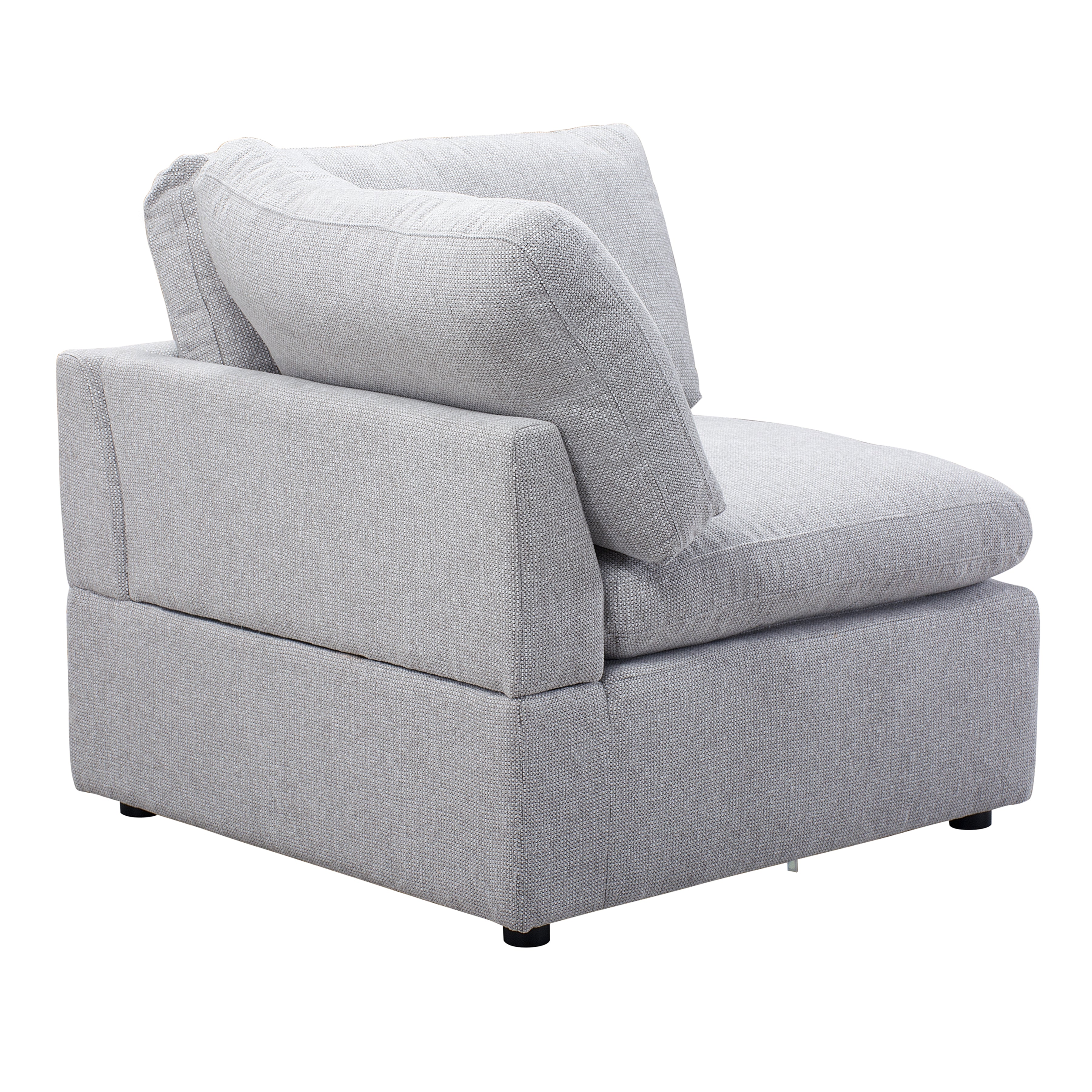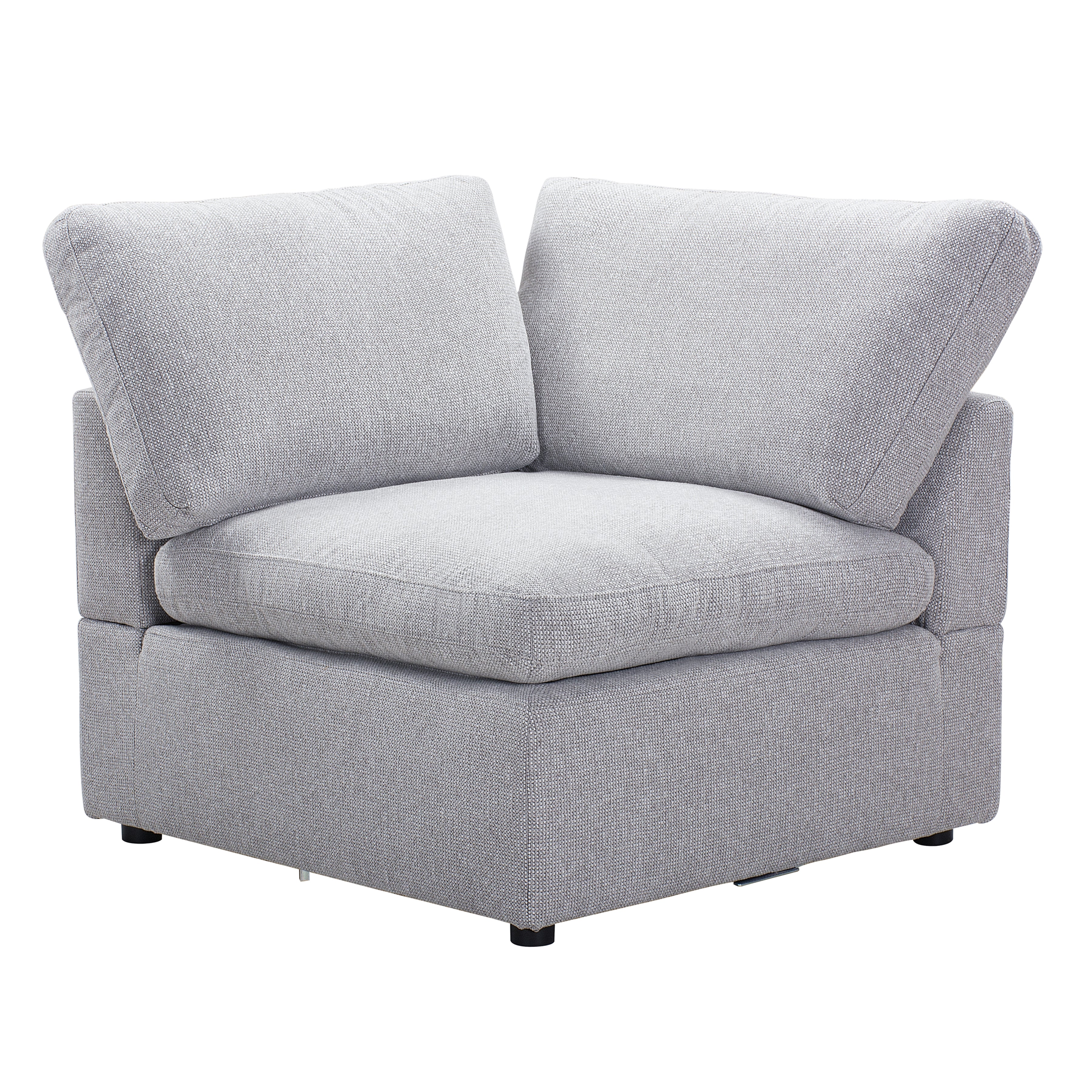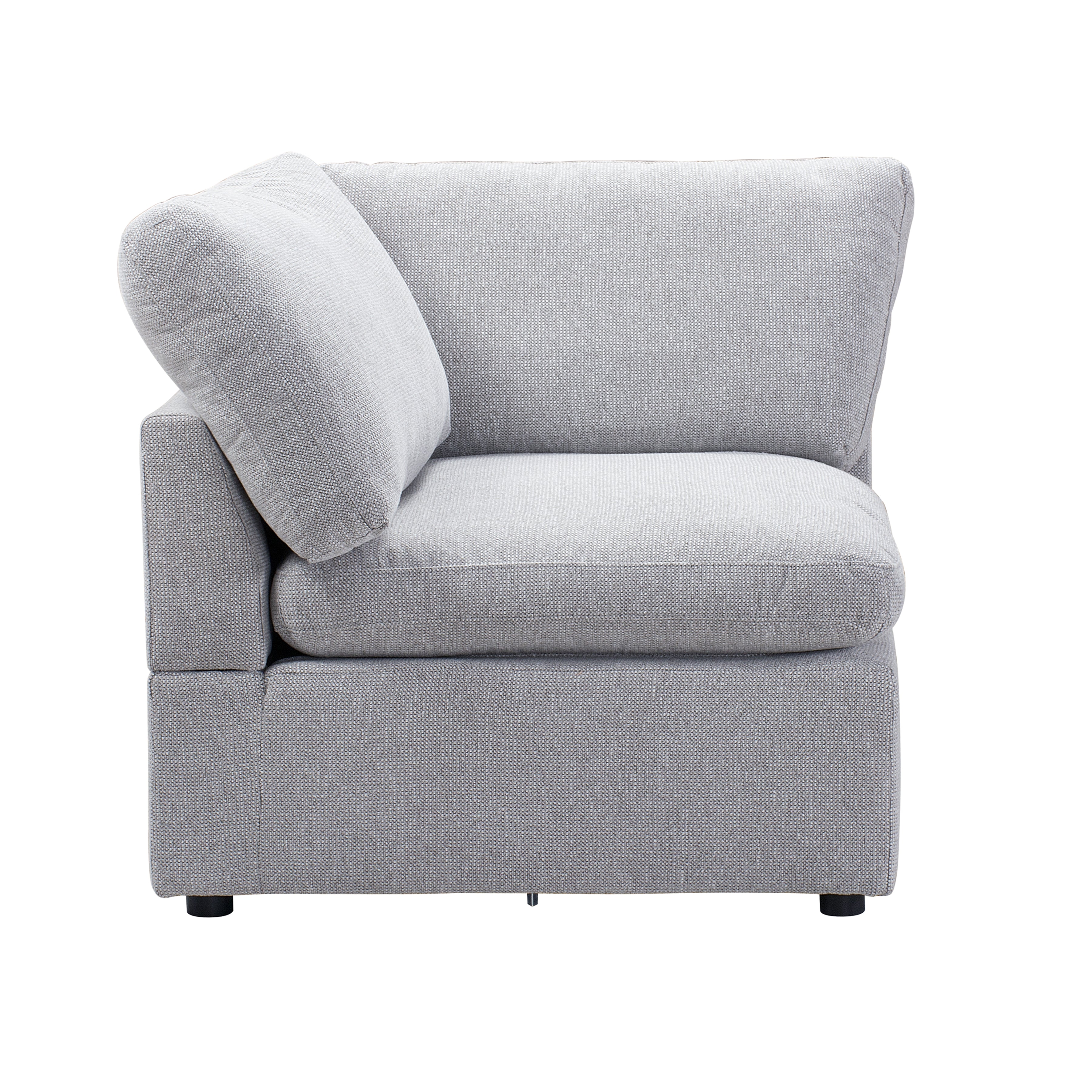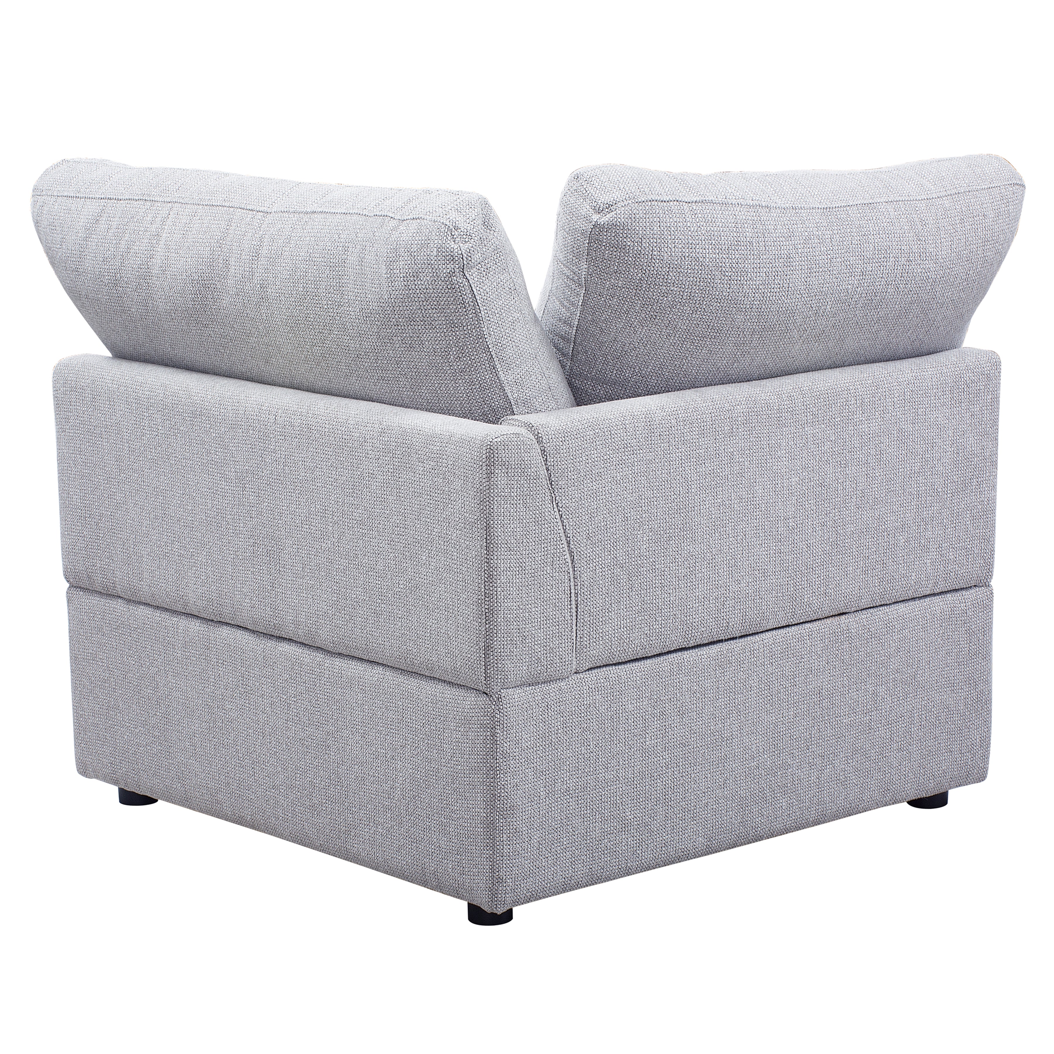 The Momento Corner Chair opens up new possibilities for your modular seating. Generous cushions with layered support make it comfortable from any angle, while base tufting keeps the look structured and refined. Upholstered in versatile light grey fabric, it blends seamlessly with the collection and repositions easily as layouts change. With low 2 in. legs and a sturdy build, it’s made to deliver both comfort and flexibility.