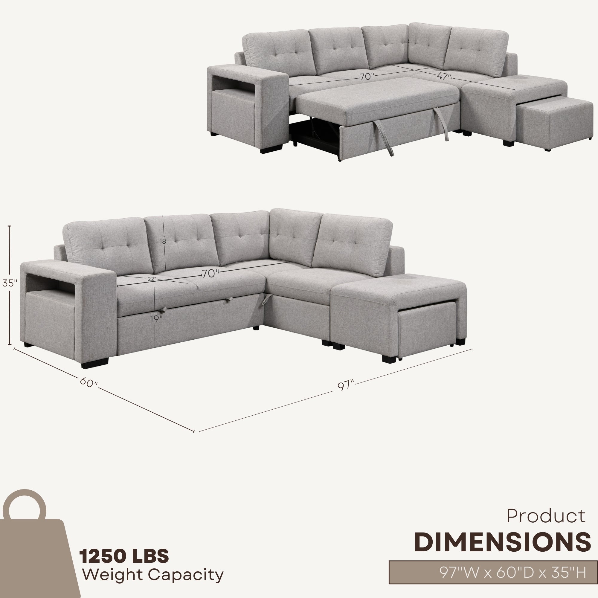 The Marcella Sleeper Sectional is the ultimate blend of style, comfort, and clever design. Whether you’re hosting guests or just enjoying a quiet night in, this sectional has your back—literally. It quickly transforms into a cozy sleeper, ideal for last-minute sleepovers or spontaneous lounging. Plus, the hidden ottomans are perfect for extra seating or kicking up your feet, tucking away discreetly when not in use. Need more storage? The chaise lifts to reveal a spacious compartment for blankets, pillows, or whatever you want out of sight, while the armrest doubles as a storage nook for your remotes or magazines. With its plush foam cushions, durable polyester fabric, and sturdy frame, the Marcella invites you to relax in style without sacrificing function.