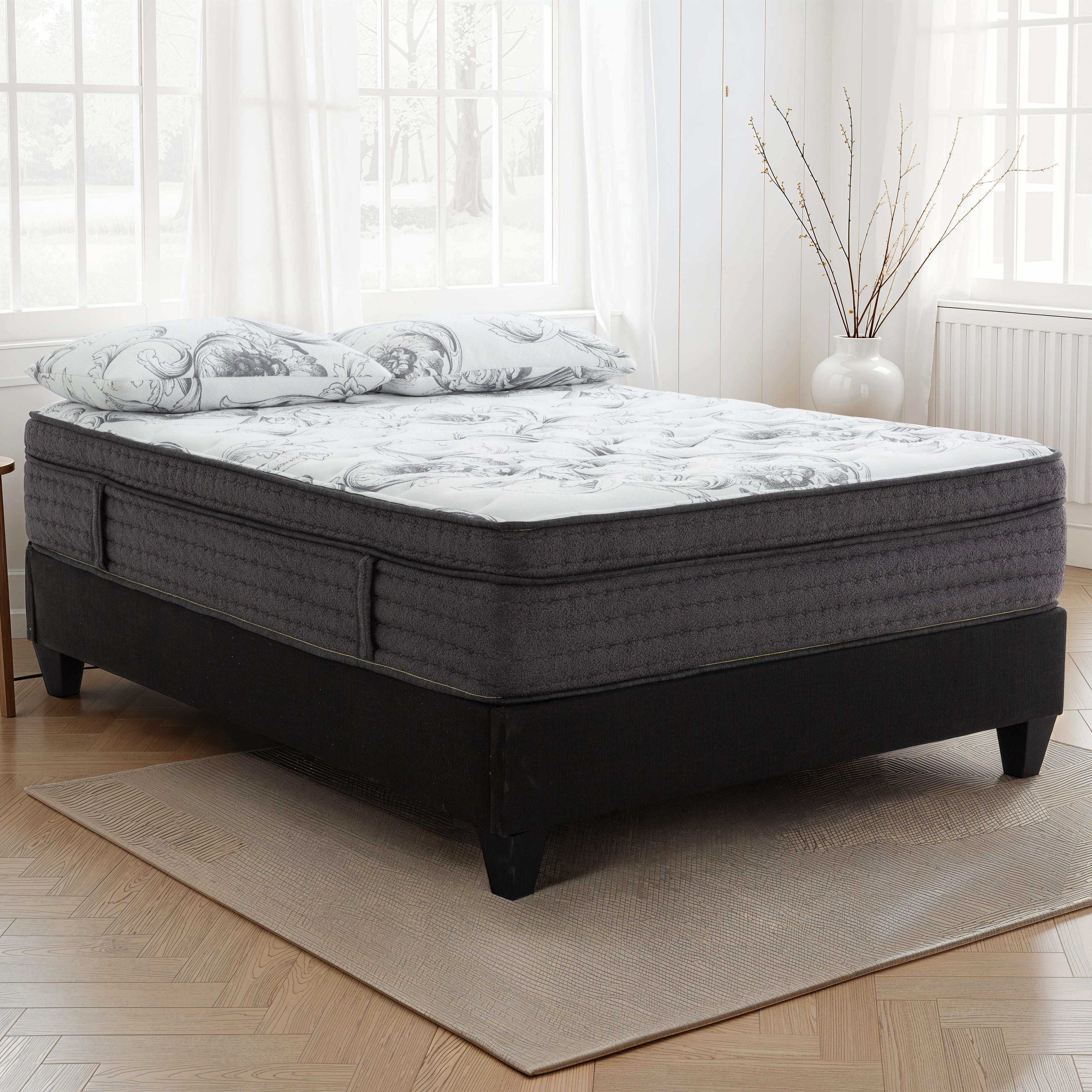 Elevate your bedroom with the Blossom 15" Euro Top Mattress—where classic design meets layered support. Its floral stretch-knit cover adds elegance and softness, while the deep Euro Top design delivers a plush feel right from the first night. Underneath, responsive foam layers and a gel-infused comfort zone help ease pressure and maintain airflow. A high-profile pocket coil core gives your body the lift it needs, helping support proper alignment without that “sink-in” feeling. Finished with foam encasement for added edge support, Blossom blends breathable comfort and full-body support in one stylish, ready-to-unbox package.