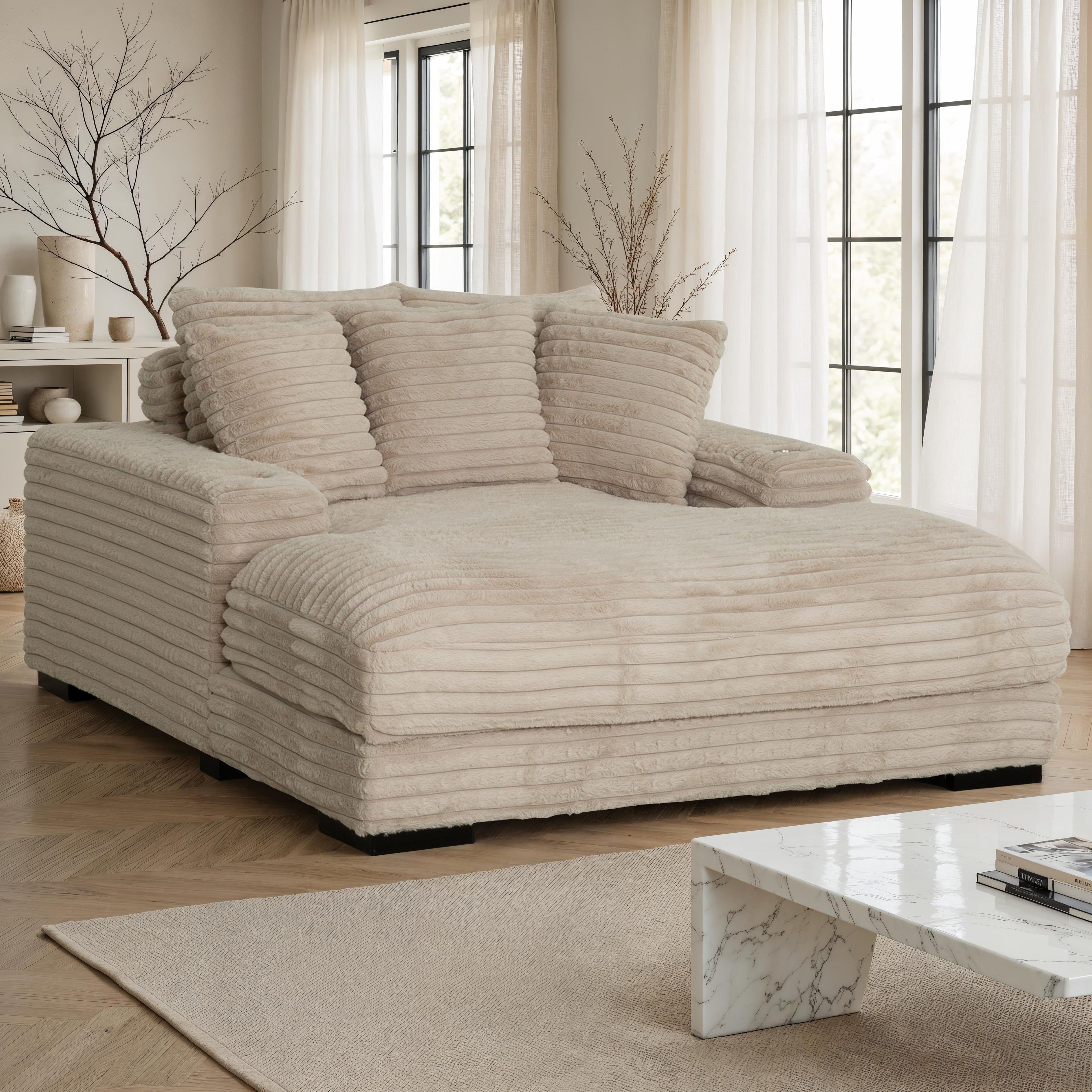 Sink into luxurious comfort with the Cuddler Lounger, the perfect spot for unwinding after a long day. This oversized lounger is upholstered in ultra-soft faux fur corduroy fabric that invites relaxation. Designed with modern conveniences, it features a built-in USB charging port, keeping your devices powered while you relax. The integrated cup holders ensure your favorite beverage is always within reach. Whether enjoying a movie night or curling up with a good book, the Cuddler Lounger offers the ultimate cozy experience, blending style and functionality in one perfect package.