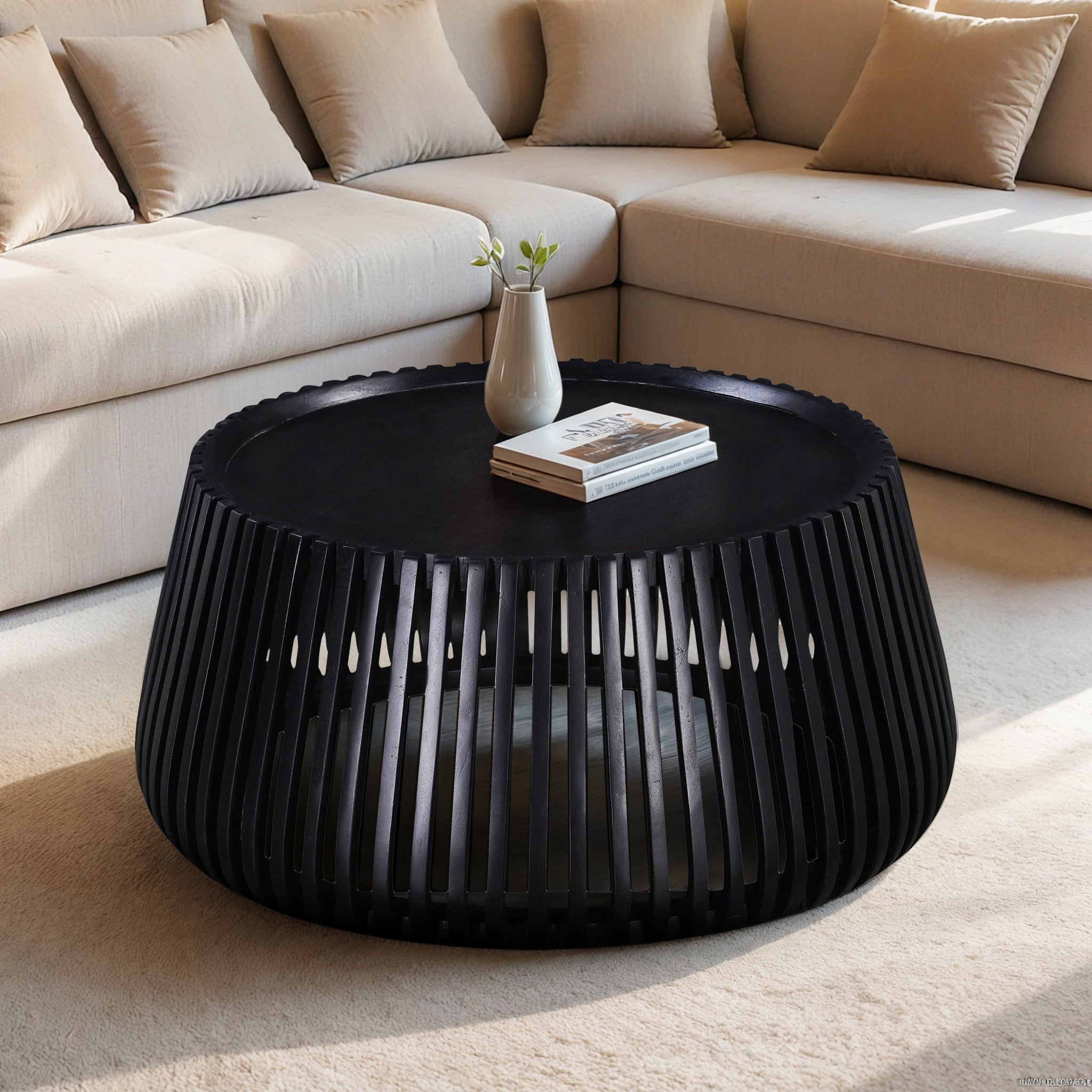 Make a bold statement with the 8827 Coffee Table, a perfect balance of modern design and natural materials. Its open slat design and rounded silhouette create an airy, contemporary look, while the sleek black finish adds a touch of sophistication to your space. Crafted from durable mango wood, this coffee table offers both beauty and functionality. Whether hosting friends or displaying your favorite decor, the 8827 provides ample surface space while seamlessly enhancing your living room’s style. Versatile and easy to reposition, this table is a stunning and practical addition to any home.