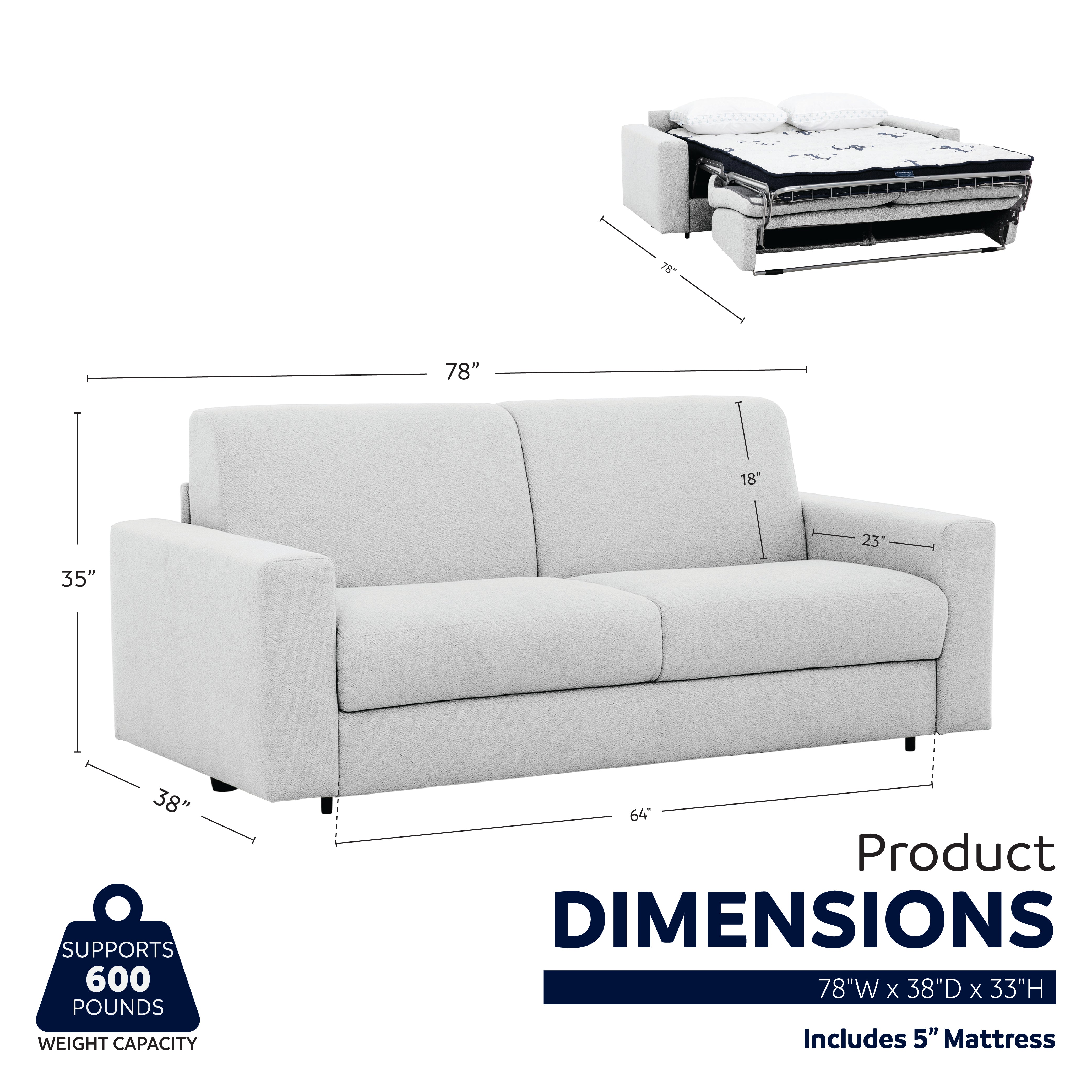 Sleeper Dimensions55"W x 75"D x 5"H