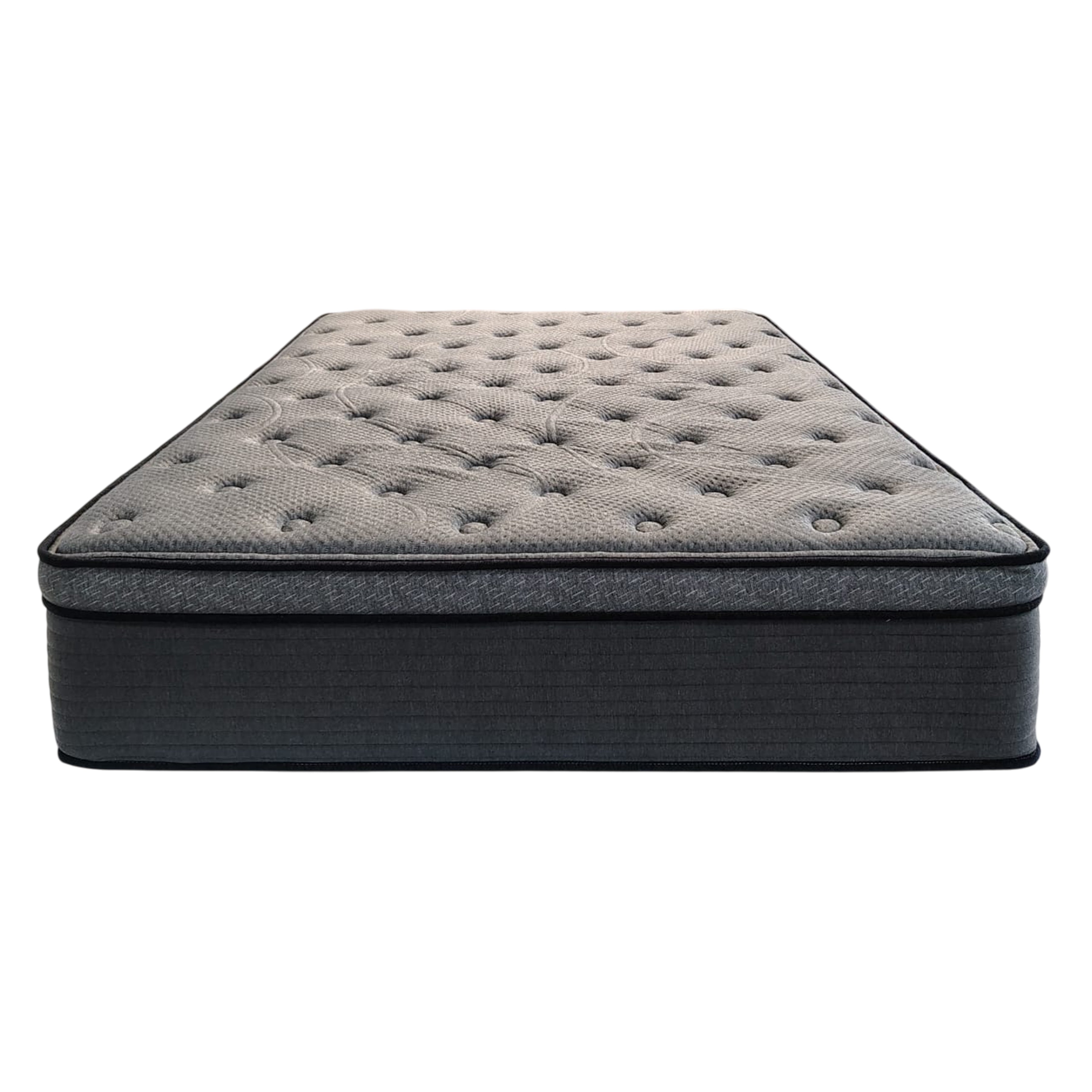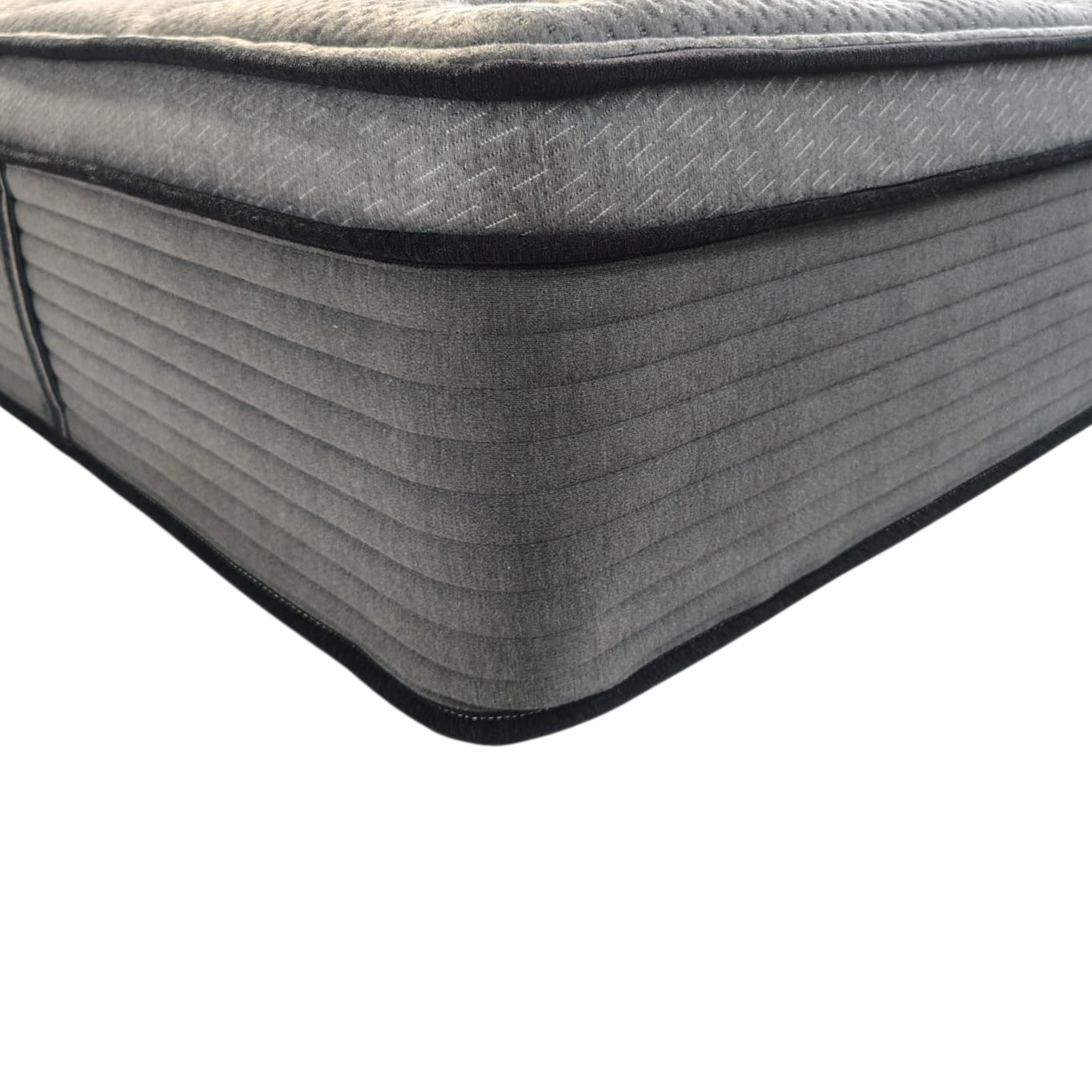 Introducing the luxurious Z Hybrid 14in Euro Top Mattress, designed to provide you with the ultimate sleep experience. With its carefully crafted layers and premium materials, this mattress ensures both comfort and support throughout the night. Featuring a combination of different foam layers, including convoluted foam for enhanced breathability and airflow, soft foam for a plush feel, memory foam that contours to your body, relieving pressure points while the high-density foam provides excellent stability and durability. To further enhance your comfort, this mattress incorporates a 1 inch pocket coil system. These individually wrapped coils work independently, offering targeted support and minimizing motion transfer, so you can sleep undisturbed even if your partner moves during the night. Safety is a top priority, which is why this mattress is fire-resistant, providing you with peace of mind. The Black knit fabric cover adds a touch of elegance while promoting breathability, so you stay cool and comfortable throughout the night.