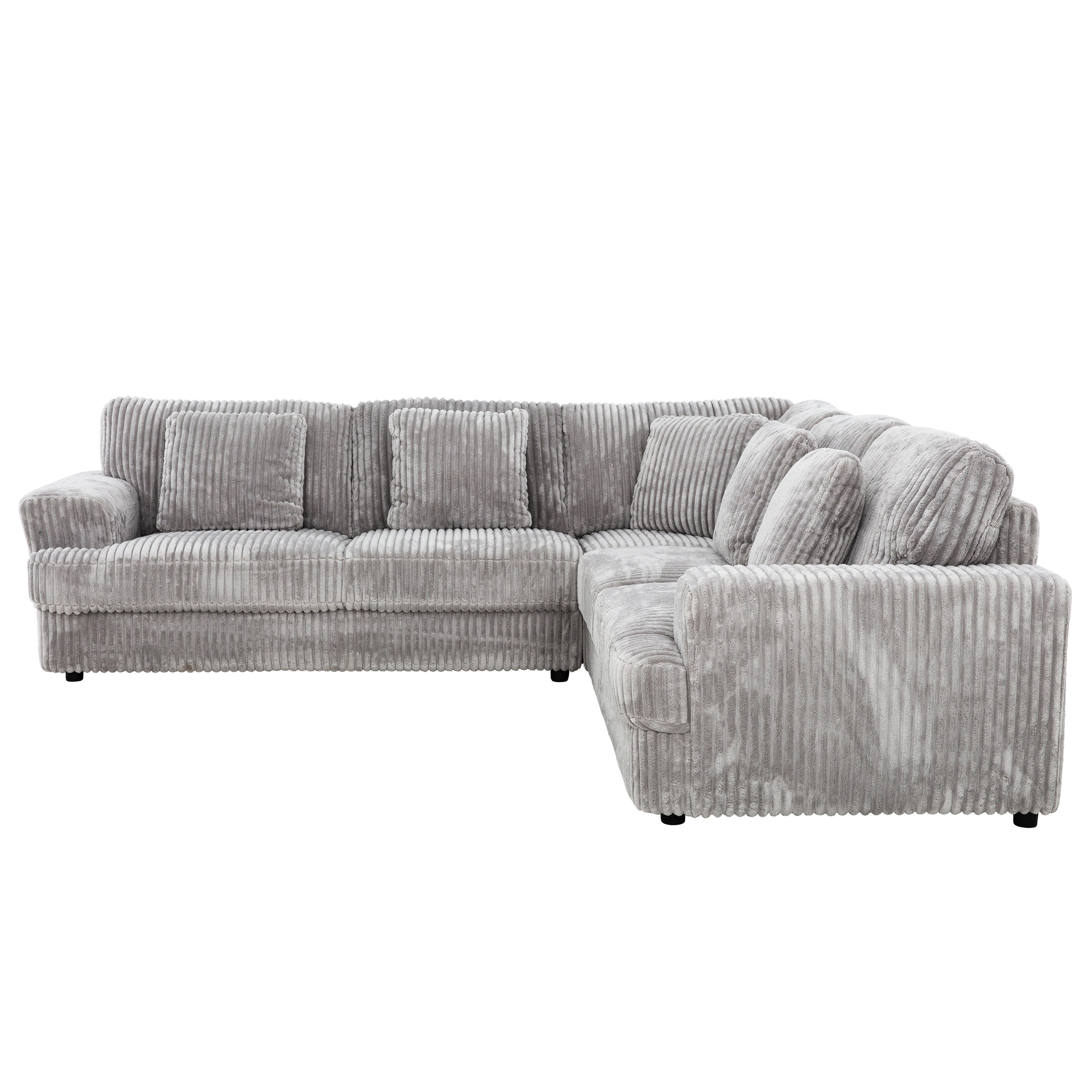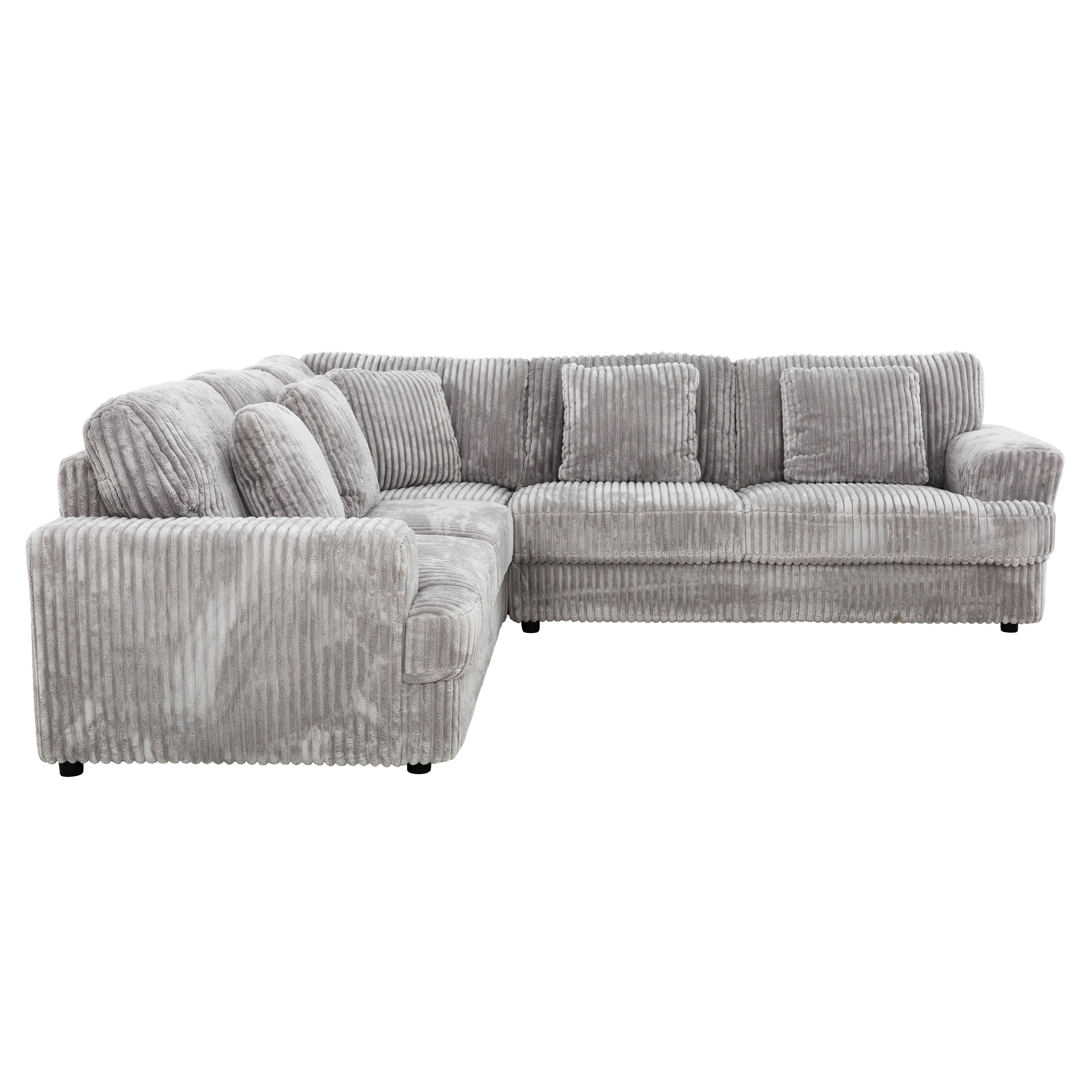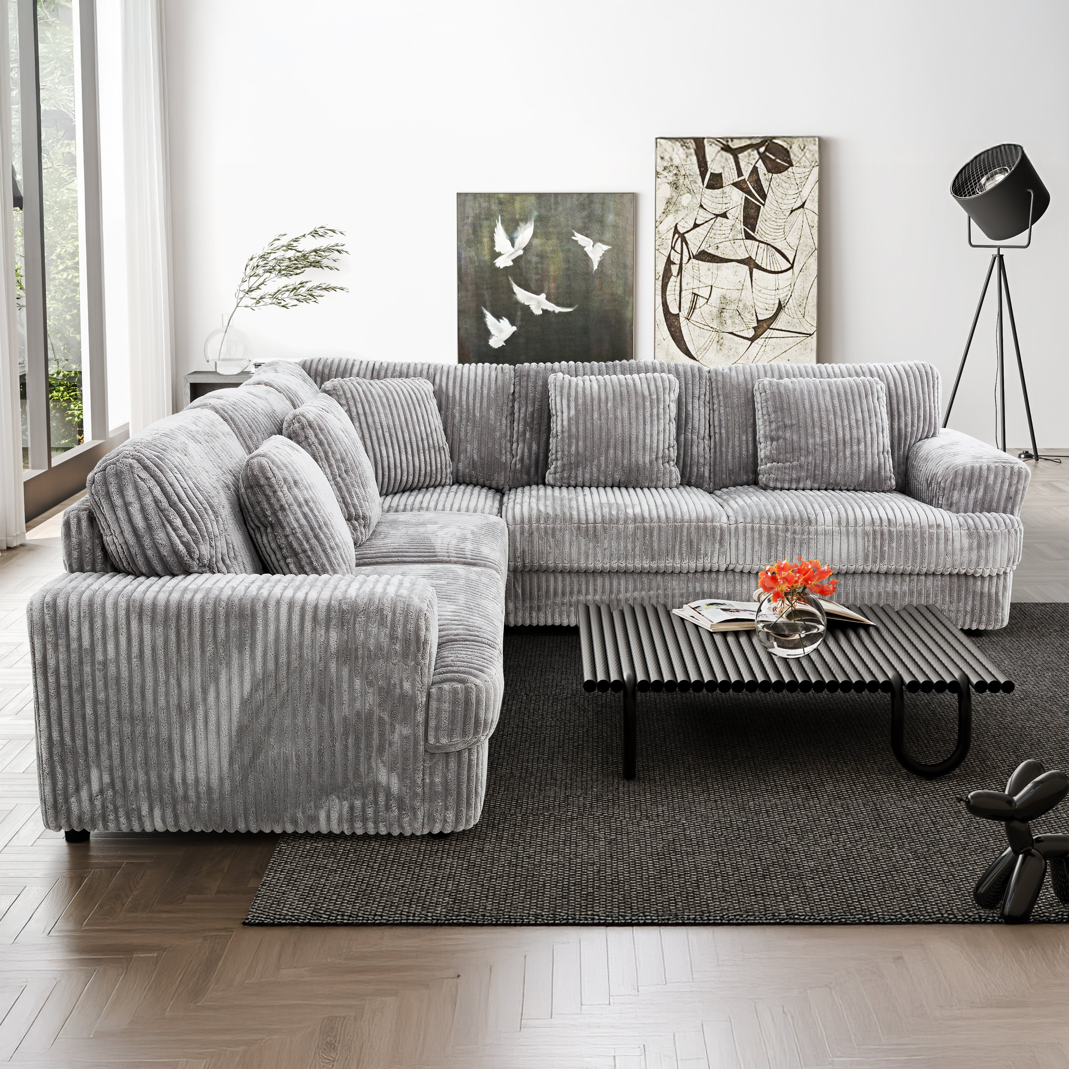 Le canapé d'angle Tarra apporte un confort spacieux et un style décontracté à votre salon. Recouvert d'un tissu à cordons ultra-doux, il invite à la détente grâce à ses assises profondes, ses coussins de dossier confortables et sa disposition en trois parties qui facilite les conversations. Les deux parties causeuses, orientées vers la gauche et vers la droite, se rejoignent par un coin d'angle, créant une forme en L généreuse, idéale pour les familles, les invités ou pour des soirées douillettes. L'assise en mousse haute résilience et ressorts ensachés offre un soutien durable sans raideur, tandis que la structure en pin et contreplaqué renforce la durabilité là où elle est essentielle. Avec ses pieds discrets et ses lignes épurées, Tarra offre un confort moelleux et spacieux, conçu pour durer.