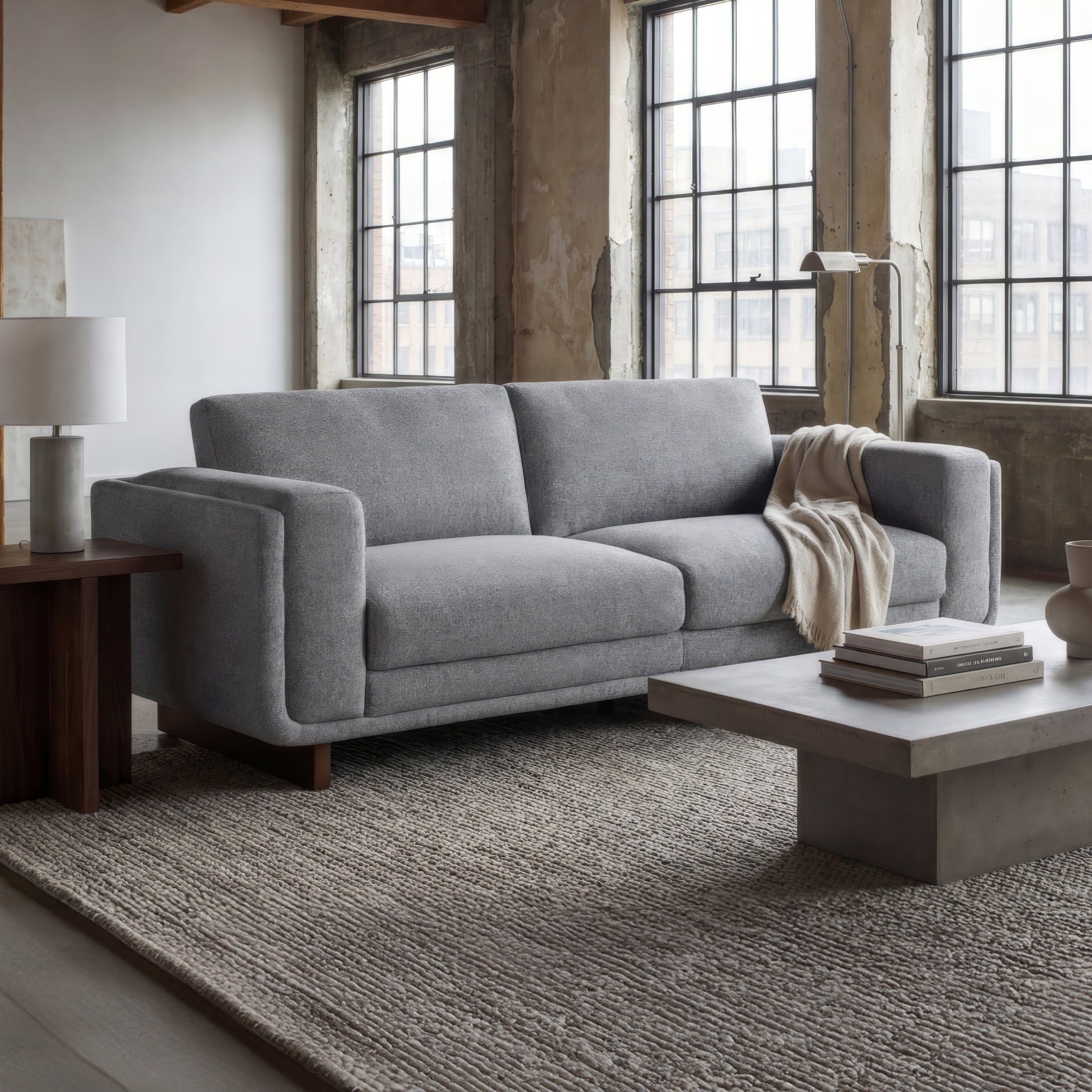 Bring a clean, comfortable anchor to your living room with the Tratto Sofa. Upholstered in gray, it’s an easy neutral that pairs well with both warm and cool accents. The foam seating gives you everyday cushion for lounging and casual hosting, while an engineered wood frame helps the sofa feel steady in daily use. Solid wood legs add a grounded finish and a little lift off the floor, keeping the profile feeling lighter. At 83 inches wide, it fits nicely as a main sofa in smaller spaces or as a streamlined option in larger rooms.