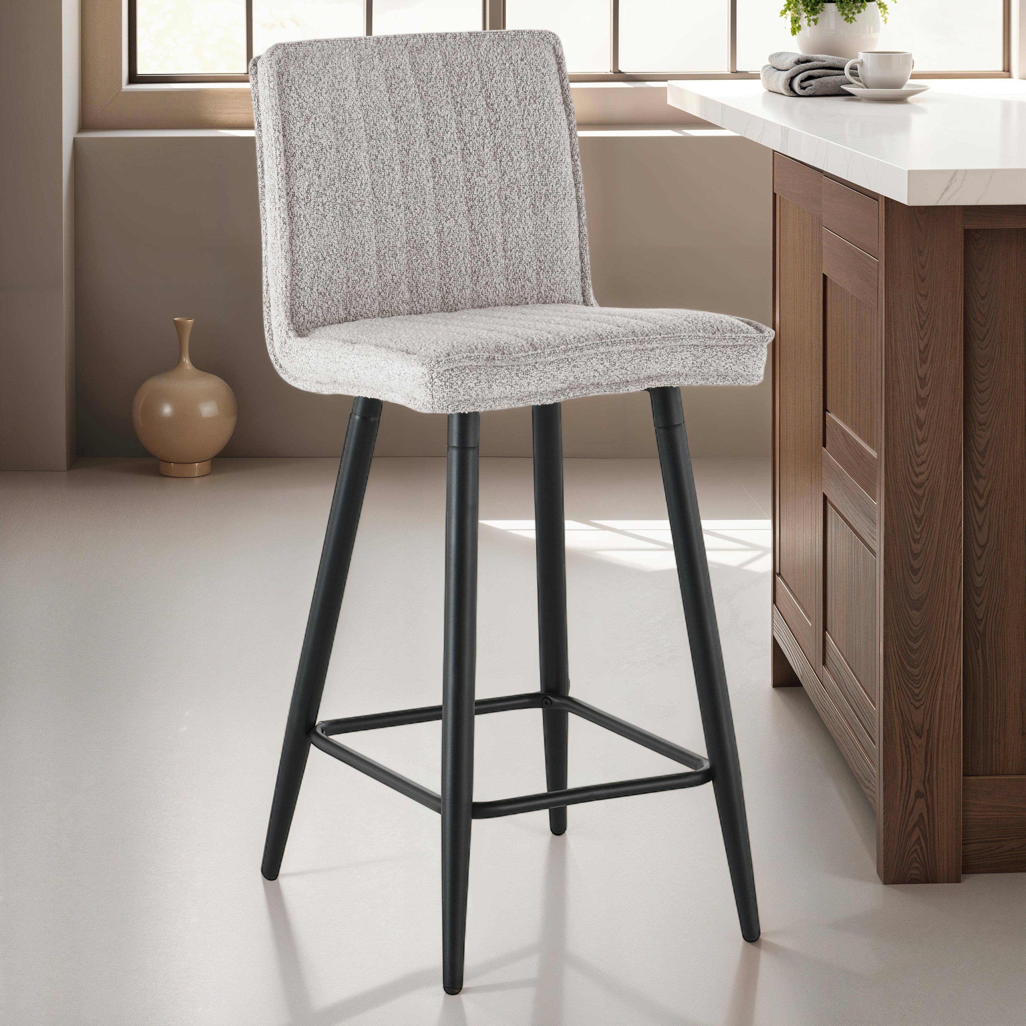 Sublimez votre salle à manger avec le design épuré des tabourets de bar 1019. Leur revêtement texturé offre confort et style, tandis que leur structure en métal robuste garantit une durabilité optimale pour un usage quotidien. Idéale pour les comptoirs de cuisine ou les tables de bar, cette chaise allie modernité et élégance intemporelle. L'assise et le dossier rembourrés en mousse offrent une assise confortable, que ce soit pour un petit-déjeuner rapide ou un dîner entre amis.