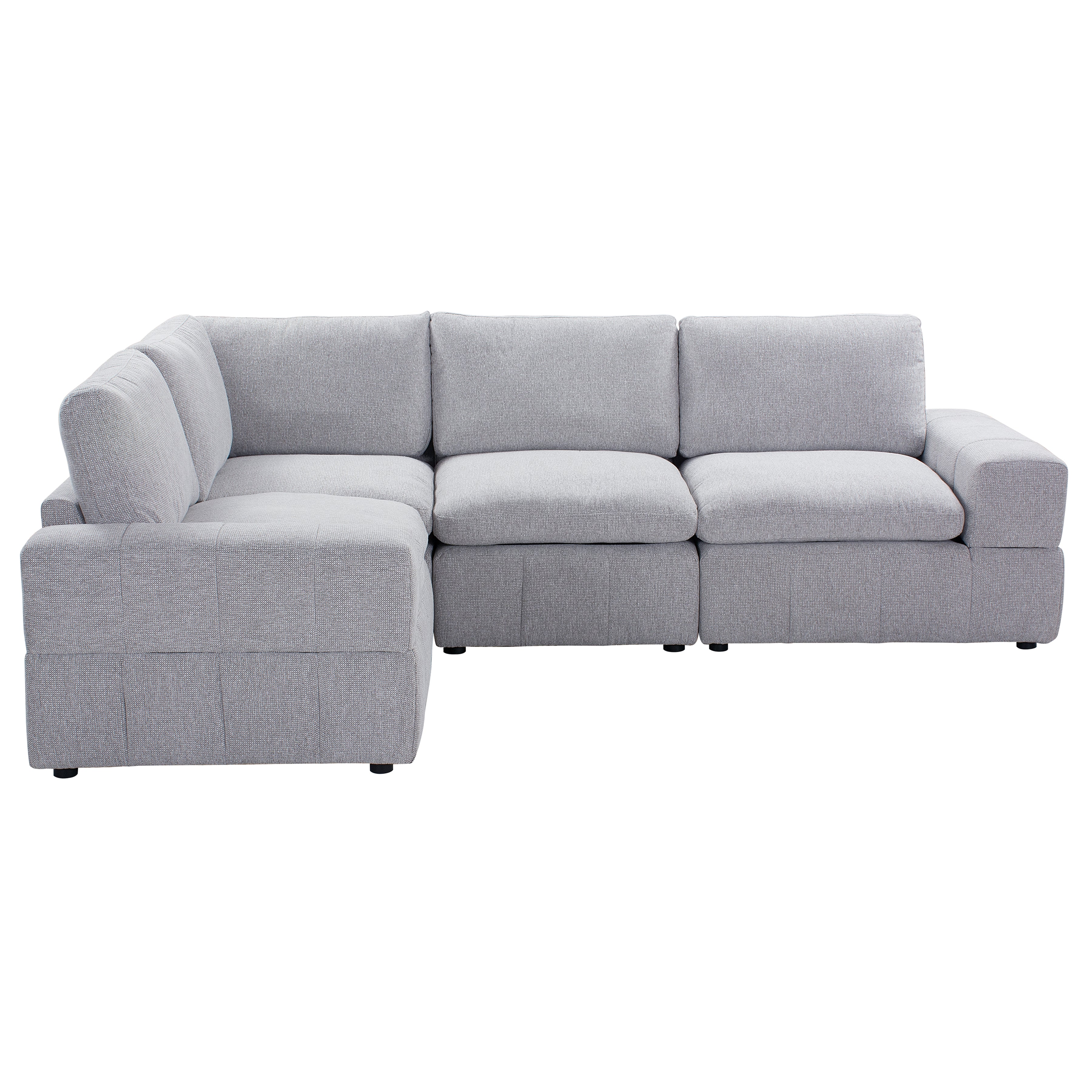 Conçu pour allier confort et flexibilité, le canapé modulable Momento s'adapte à l'évolution de votre espace. Sa configuration en quatre parties crée une assise d'angle généreuse, idéale pour les réunions ou la détente au quotidien. Des coussins en mousse épaisse avec ressorts équilibrent la structure et offrent un confort optimal, tandis que le capitonnage de la base offre une finition sur mesure. Revêtu d'un tissu gris clair polyvalent, il s'intègre parfaitement à tous les intérieurs, du plus minimaliste au plus familial. Fabriqué sans connecteurs, chaque élément se repositionne facilement pour vous permettre de modifier votre configuration à votre guise.