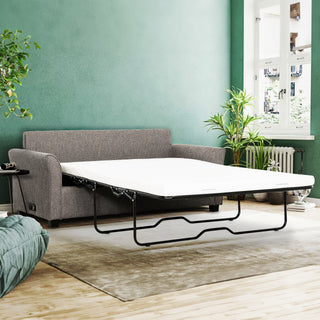 Meet the Drake Sofa Bed, where modern design meets versatile functionality. Upholstered in dark grey linen fabric, this sleek sofa effortlessly complements any living space with its clean lines and contemporary charm. Designed for ultimate comfort, it features pocket coil and foam support, while the durable metal and plywood frame ensures it’s built to last. The added convenience of side-located USB ports and power outlets lets you charge your devices with ease. Whether you're enjoying a cozy movie night or converting it into a bed for guests, the Drake is the perfect balance of style and practicality.