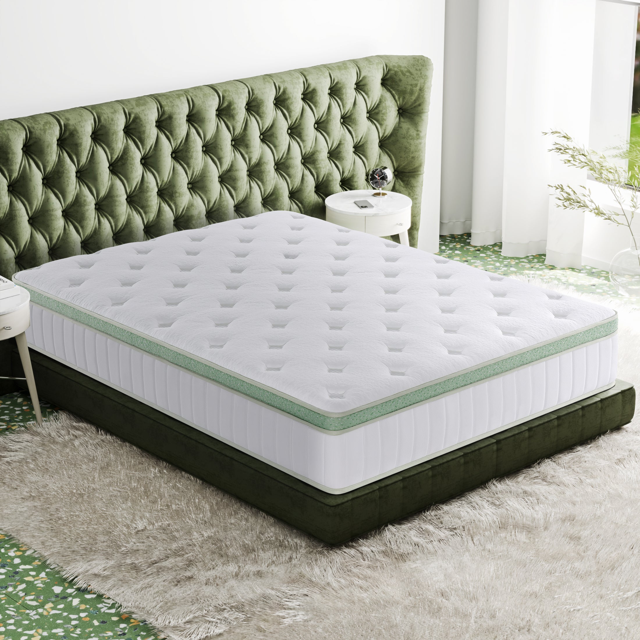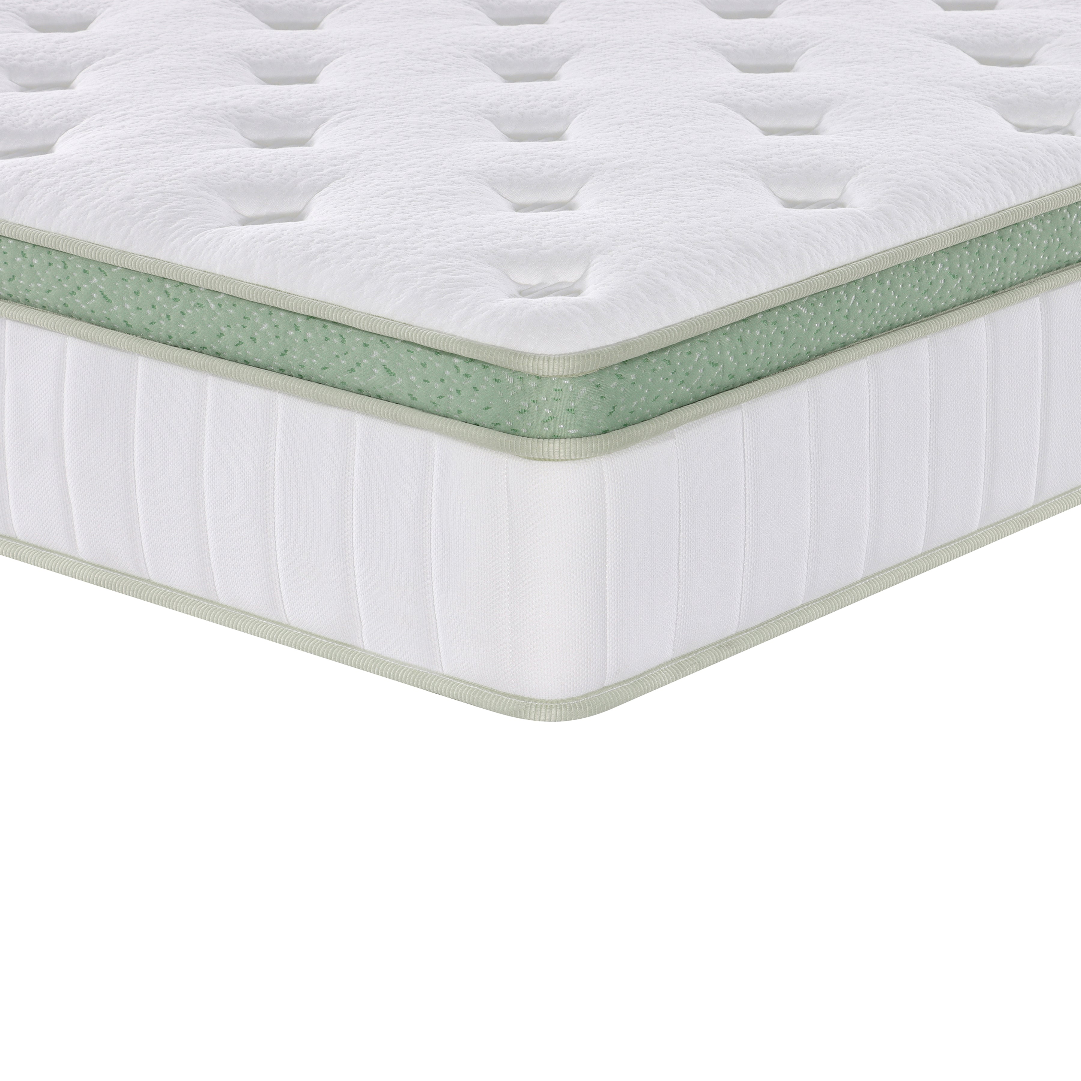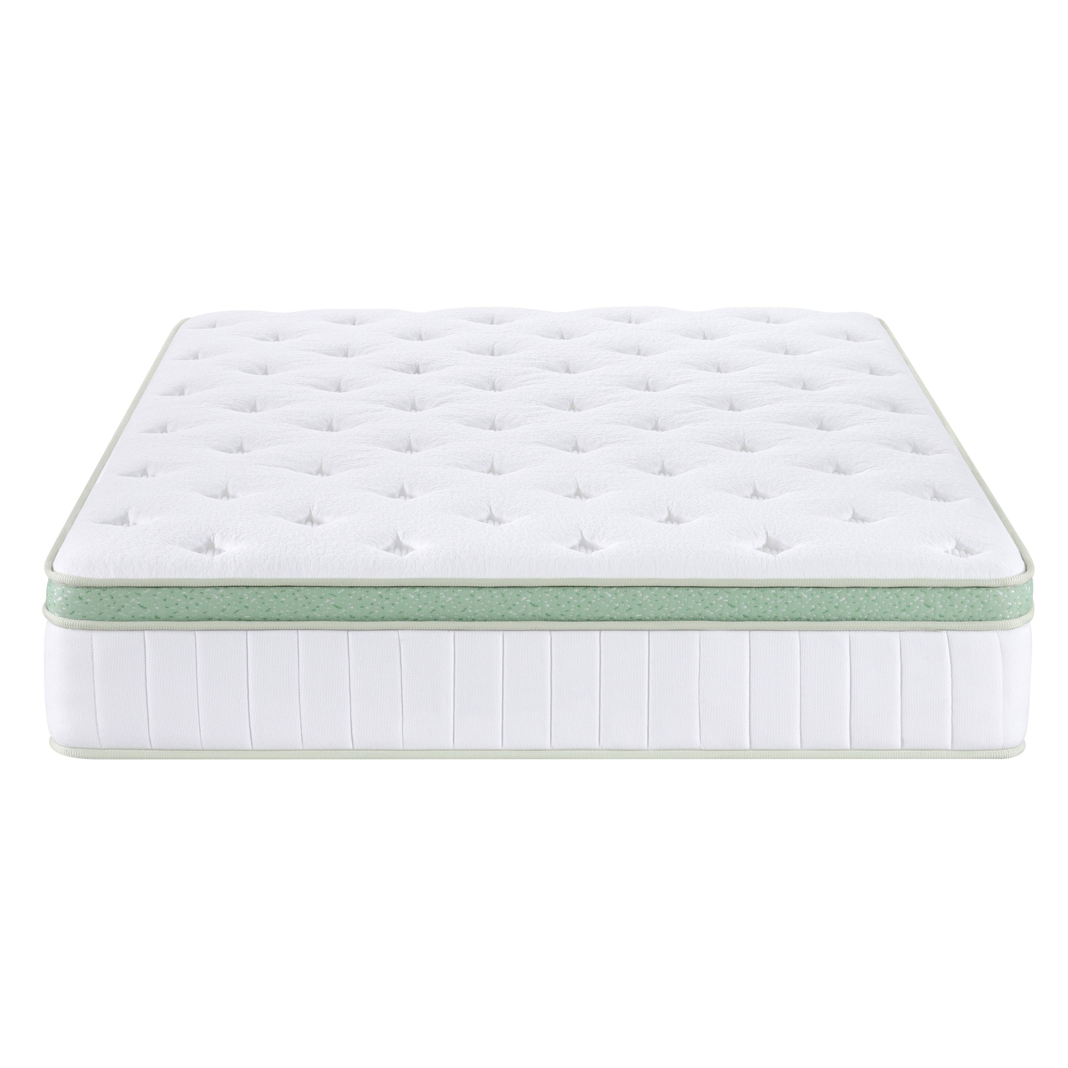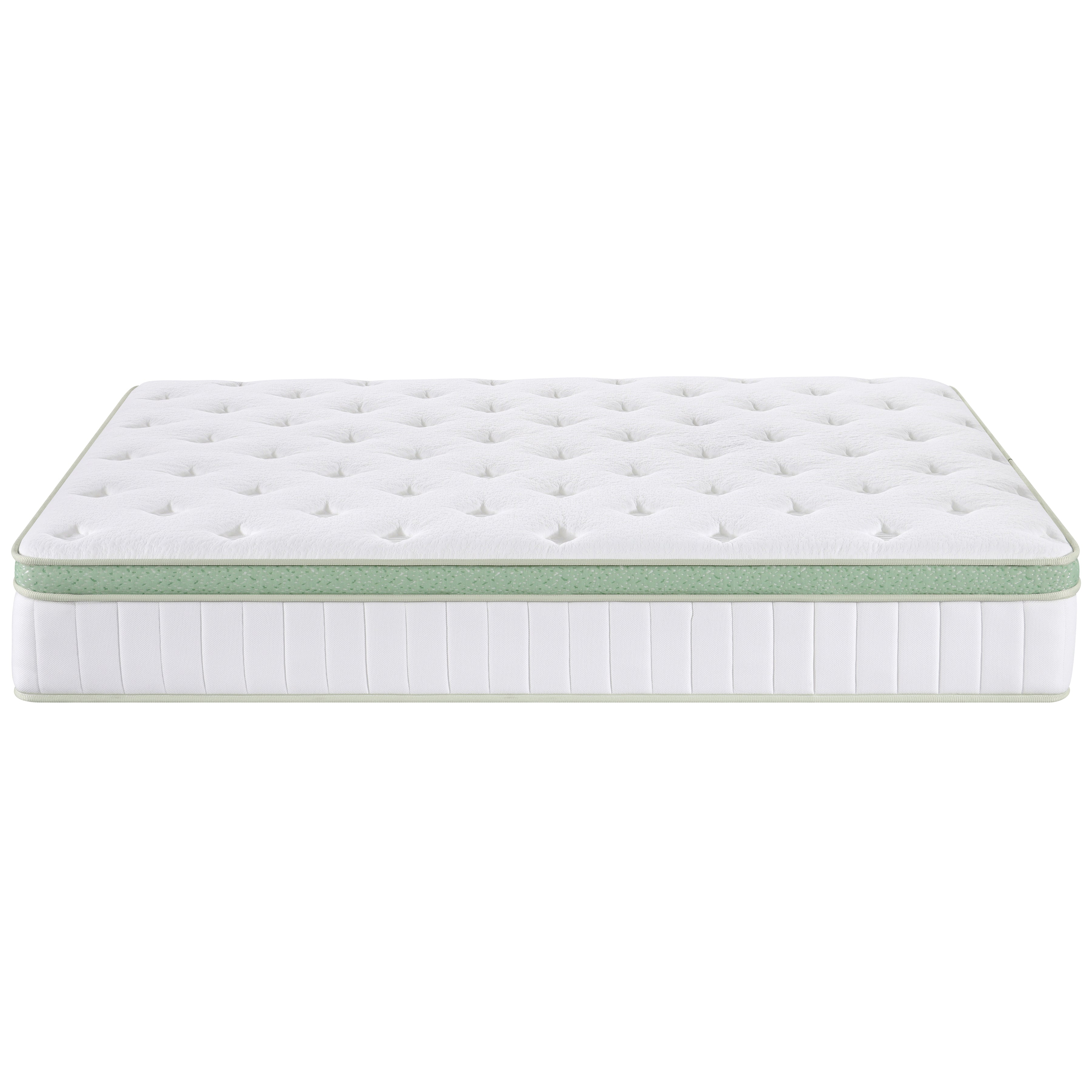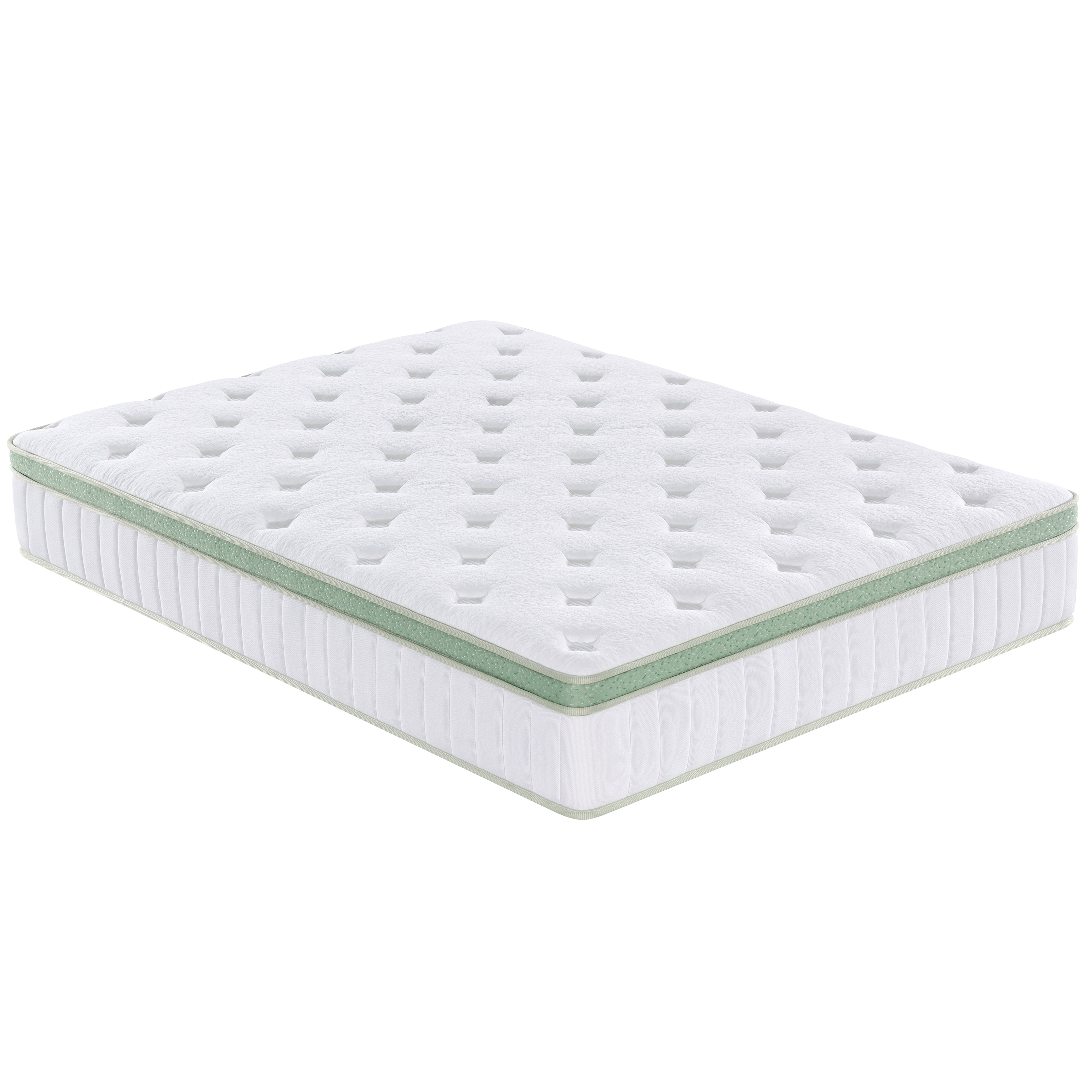 The Ginseng 12" Hybrid Mattress blends modern comfort with natural relaxation for a better night’s rest. Its stretch-knit bamboo-blend cover offers a breathable, soft-to-the-touch surface that stays cool through the night. Inside, a unique layer of aromatherapy foam—infused with green tea and agarwood—helps reduce stress while supporting your body. Convoluted foam adds gentle pressure relief, while a reinforced 8-inch pocket coil base enhances motion isolation and edge stability. Extra foam and fabric layers add durability and structure, rounding out a balanced sleep experience that combines cushioning comfort with deep support. With a medium-firm feel and fresh finish, it’s built for nights that leave you refreshed.
